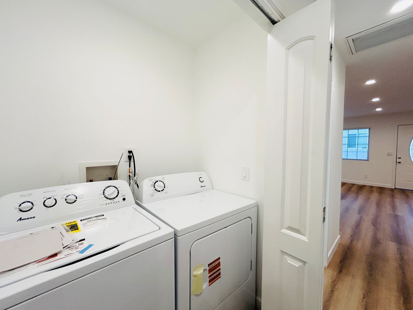 Welcome to this large and lively 6-bedroom perfect for a large household or those who love extra space. It has an open-concept layout that connected the living, dining, and kitchen areas. It is designed with you in mind! This charming property features recessed lighting and elegant wood flooring throughout. The spacious living room is bathed in natural light, creating a bright and airy atmosphere. It seamlessly connects to the kitchen, which comes equipped with a refrigerator, stove, dishwasher, and microwave. All 6 bedrooms are generously sized and include sliding mirrored closets. The bathrooms have combination showers and tubs. Additional conveniences include a side-by-side washer & dryer, a private backyard, and 4+ parking spaces. It is minutes to the 5, 210 & 118 freeways for an easy commute. It is also close to El Cariso Community Regional Park, great for hiking and other outdoor activities.