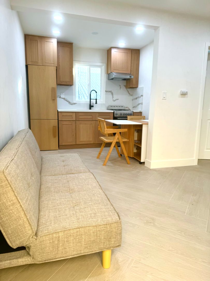 This charming studio just west of Lincoln is a must see! The living area has a murphy bed hidden by wood paneling with a cozy closet directly next to it. The kitchen has a fridge, stove ample cabinet space with custom backsplash. The bathroom also has custom tile with a combination bathtub and shower. There is an A/C unit and recessed lighting. We are centrally located blocks to the Venice Boardwalk, Main Street, Santa Monica Pier, Restaurants and Shopping. Garage parking available for an additional fee.